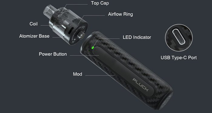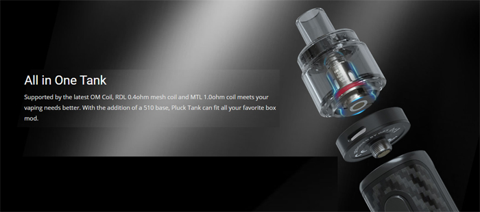 Le Pluck Tank est une sorte de style de kit de pod mais avec une connexion inférieure standard 510, il peut donc également être utilisé sur tout autre mod ou batterie avec ce connecteur.
