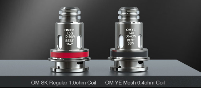 La gamme de bobines OM qui est également utilisée sur le kit Skye sont compatibles avec ce tank et il y a 2 résistances incluses dans le kit:
