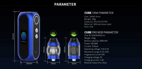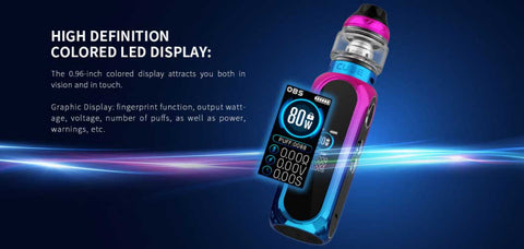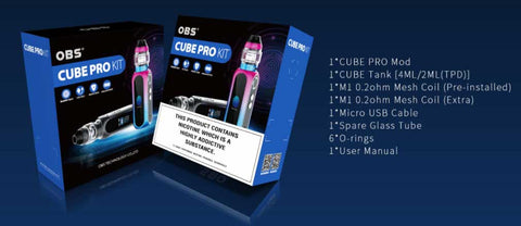 Carré ou rond, qu'importe le format, avec le kit Cube Pro, OBS propose une cigarette électronique simple à utiliser! Il pourra monter jusqu'à 80W, à l'autonomie énorme de 3000mAh. La charge de type C et de plusieurs protections sont fournies dans ce kit. Cinq couleurs sont disponibles: noir, bronze, argent, arc-en-ciel et bleu.