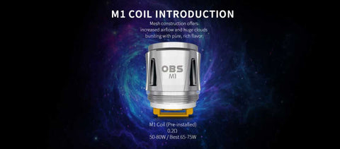 Le Cube Tank utilise la résistance M1 mesh coil, dont vous trouverez deux dans l'emballage. La résistance M1 a un élément chauffant de 0,2 ohm, avec une plage de puissance de 50 à 80 watts, meilleur de 65 à 75 watts. Grâce au mesh coil intégré, le flux d'air est augmenté pour une vapeur énorme avec une production de saveur pure.