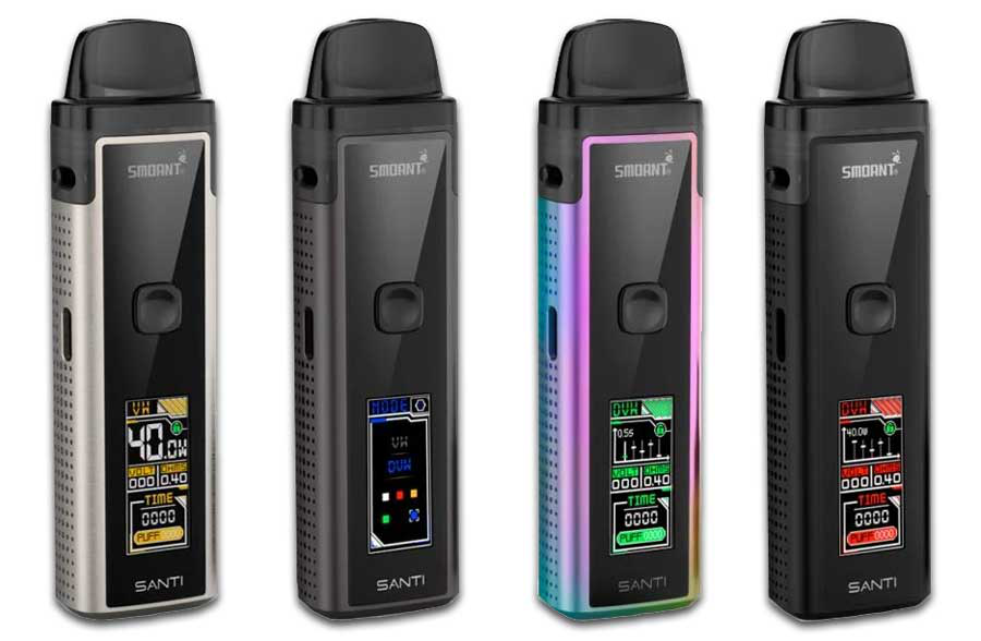 Le kit Smoant Santi est un kit de vape portable qui devrait être populaire auprès des débutants et des vétérans de la vape. Disponible dans les couleurs bronze, acier inoxydable, noir et arc-en-ciel, le Santi est doté d'un châssis en alliage de zinc avec une belle finition qui est également durable et facile à tenir. De plus, la peinture utilisée résiste aux empreintes de pouces.