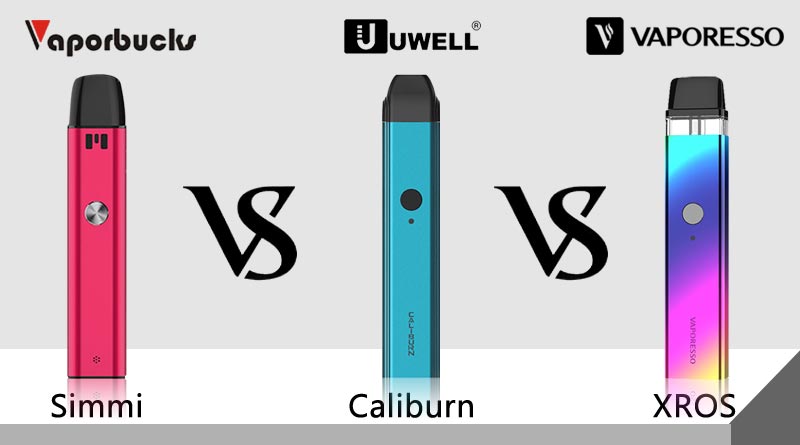 Uwell Caliburn, l'un des systèmes de pod les plus vendus. Auparavant, nous avions comparé le Vaporesso XROS avec le Caliburn, maintenant un autre produit très similaire va être lancé - SIMMI de Vaporbucks. Bien que nous ayons également ajouté le XROS dans cette nouvelle comparaison, nous parlerons davantage du SIMMI VS Caliburn dans ce blog.