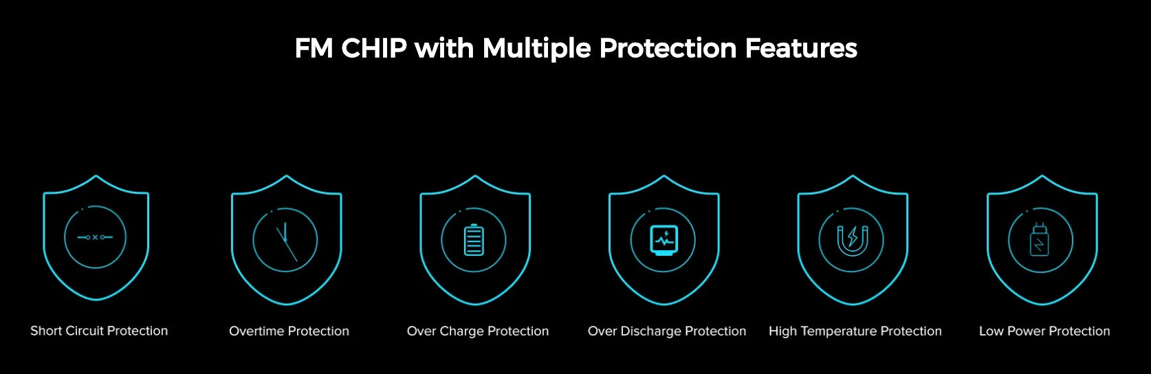 Protections: court-circuit / heures supplémentaires / surcharge / décharge excessive / protection contre les températures élevées / faible puissance