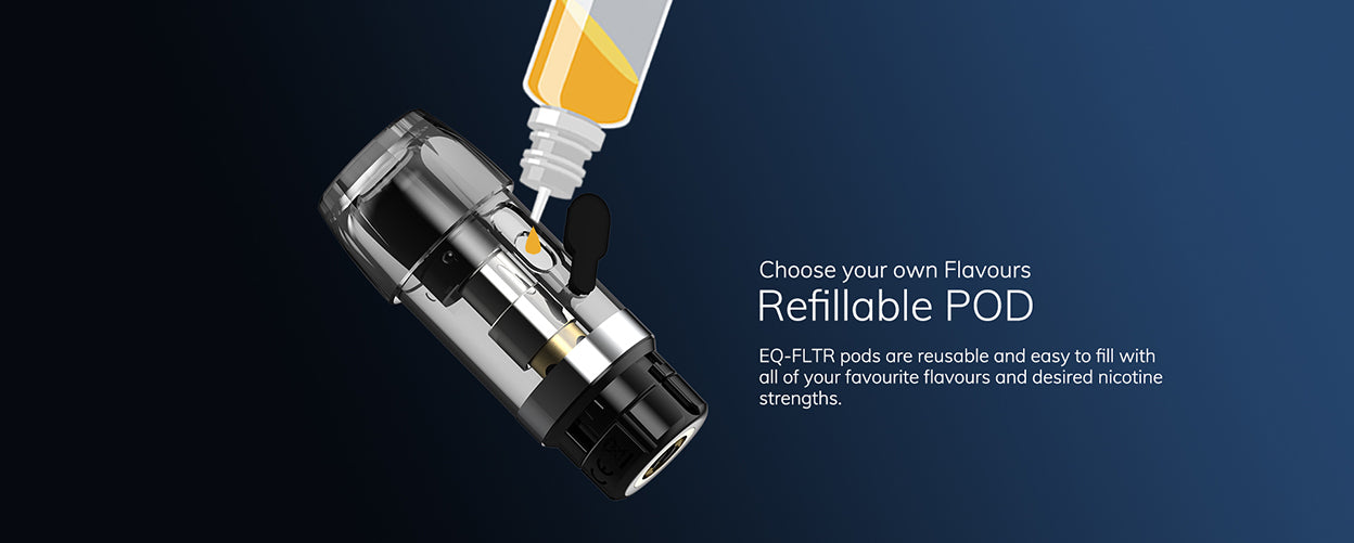 Il existe deux types différents de drip tip, l'un en plastique et l'autre en coton, qui est biodégradable, donc non nocif pour l'environnement. Le capuchon de protection maintient les filtres en coton propres, ce qui leur permet de durer plus longtemps. Le kit Innokin EQ FLTR comprend deux types de dosettes, toutes deux d'une contenance de 2 ml. Utilisez les pods EQ-FLTR RC pour préserver les pods et réduire les déchets plastiques et les coûts. La bobine est remplaçable et compatible avec la bobine sceptre 1.2ohm. Le pod EQ-FLTR est réutilisable et facile à remplir avec votre e-liquide préféré. Bobine de 1,2 ohm intégrée en interne et ne peut pas être remplacée. Les filtres EQ sont biodégradables et spécialement conçus pour donner la sensation d'une cig conventionnelle. L'emballage EQ-FLTR est 100% recyclable. La combinaison de l'auto-tirage, du filtre souple et d'une vape bouche-à-poumon restreinte signifie que ce système de dosettes imite étroitement l'expérience de fumer une cig.