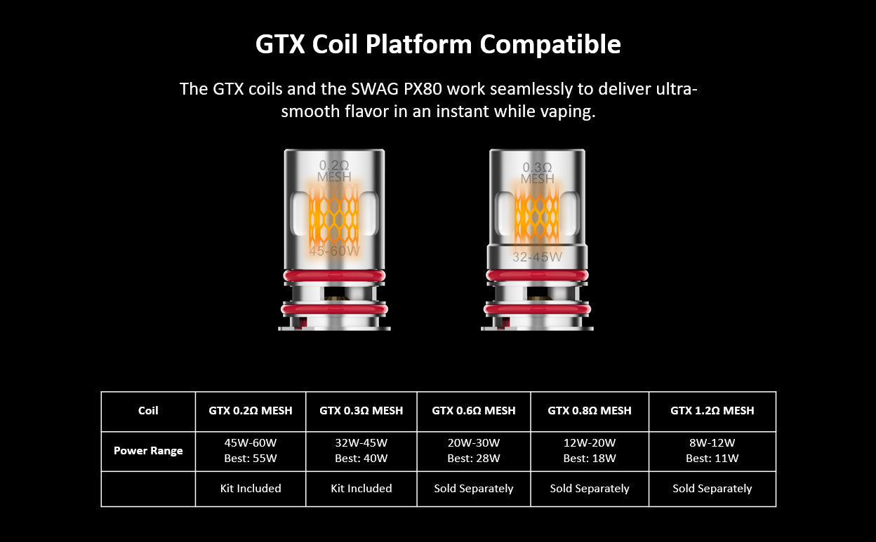 Bobine : Bobine MESH GTX 0,2ohm (45-60W), Bobine MESH GTX 0,3ohm (32-45W)