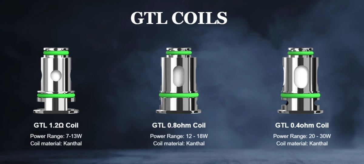 Coil : GTL 1,2ohm Coil(7-13W)/GTL 0,8ohm Coil(12 - 18W)