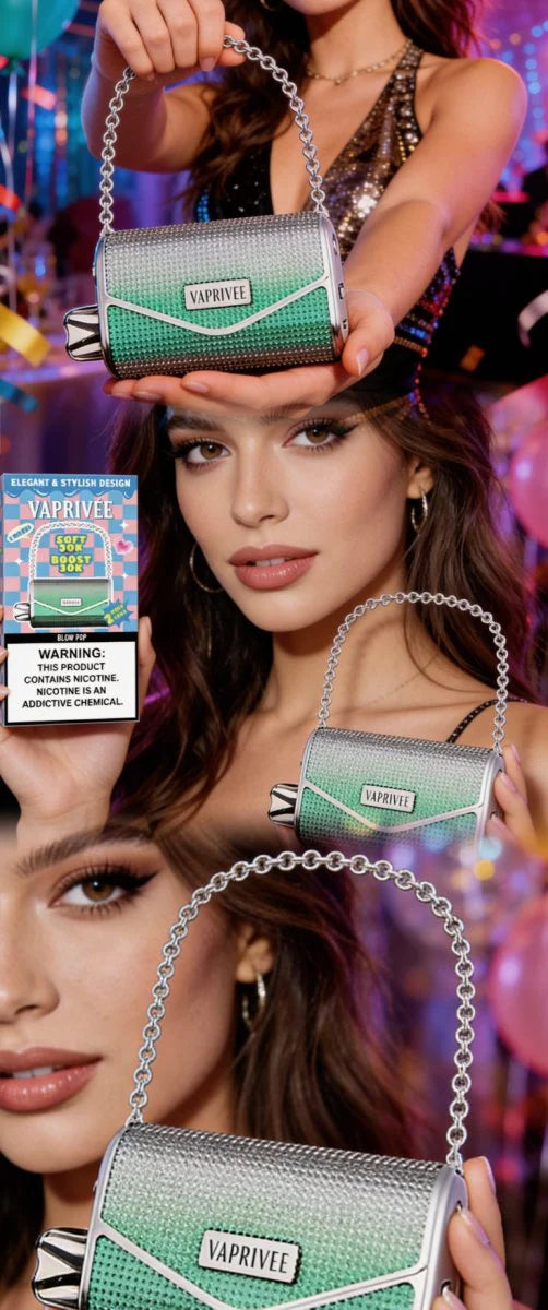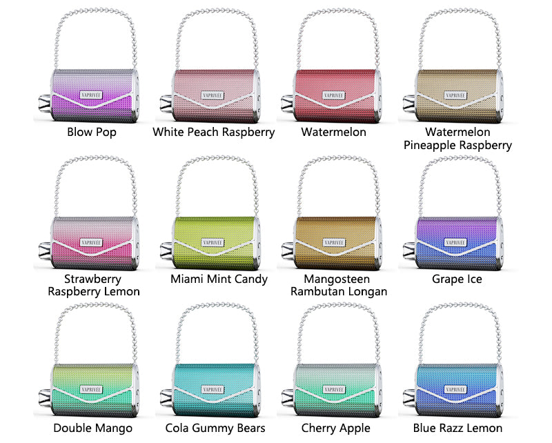 Le kit jetable Vaprivee 50000 Puffs offre jusqu'à 50 000 bouffées, une capacité de 20 ml, des résistances double mesh et un design luxueux inspiré d'un sac à main, avec une finition diamantée. Doté d'un flux d'air réglable, d'une batterie rechargeable de 900 mAh et d'un port USB-C, il allie parfaitement style, fonctionnalité et saveur pour une utilisation quotidienne.