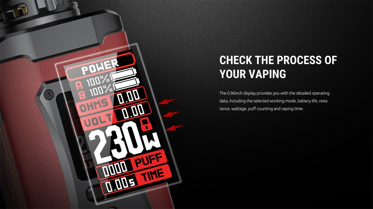 Protections: coupure de 8 secondes / détection d'atomiseur / surchauffe / court-circuit / avertissement de batterie faible / polarité inversée / protection contre les décharges excessives