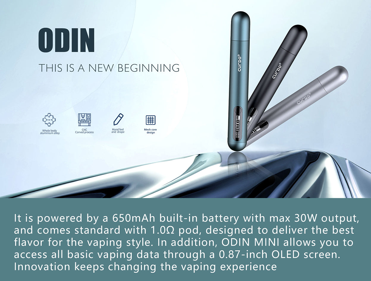Il est alimenté par une batterie intégrée de 650 mah avec une sortie maximale de 30 W et est livré en standard avec un pod de 1,0 ohm, conçu pour offrir la meilleure saveur pour le style de vapotage. De plus, ODIN MINI vous permet d'accéder à toutes les données de vapotage de base via un écran OLED de 0,87 pouces. L'innovation ne cesse de changer l'expérience de vapotage.
