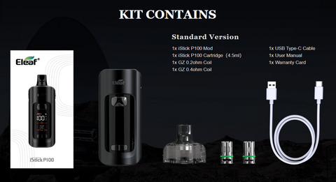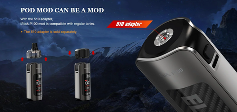 Le Kit Pod iStick P100 est un appareil super puissant et performant. Stable et fiable, ce qui en fait le choix idéal pour les vapoteurs débutants et les utilisateurs plus expérimentés. Avec des résistances pour le vapotage DL et Half-DL, le tout dans un appareil compact. Le kit iStick P100 est fabriqué en alliage de zinc durable et en PC, une construction robuste et de haute qualité avec un design élégant et attrayant. Avec une batterie intégrée de 3400 mAh, il peut tirer une puissance maximale de 100 W. Équipé d'un écran TFT de 1,14 pouces, il vous affiche des données de vapotage claires. Il existe 2 types de mode pour votre option: le mode Regular Power et le mode Smart facile à utiliser. Les résistances GZ 0.2ohm et GZ 0.4ohm sont conçues pour une vapeur toujours dense et une saveur exceptionnelle avec une interaction maximisée entre l'e-liquide et le coton. De plus, il prend en charge l'adaptateur 510 (vendu séparément) pour rendre le mod iStick P100 compatible avec les réservoirs ordinaires.