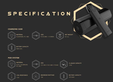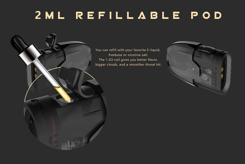Le kit de pod Uwell Tripod PCC se compose d'un kit de pod et d'un boîtier de chargement. Il peut transporter 3 dosettes en même temps. Vous pouvez remplir différents e-liquides dans les trois dosettes, ce qui vous apportera différentes saveurs à tout moment et n'importe où. Le boîtier de charge est compact et peut être facilement tenu dans la paume de votre main. Il y a des indicateurs LED sur le boîtier de charge pour vous montrer le niveau de puissance actuel et l'état de charge. Le kit Tripod PCC est livré avec un dosette rechargeable de 2 ml et vous pouvez le remplir avec le e-liquide que vous aimez, comme le freebase, le sel de nic. La résistance de la bobine est de 1,2 ohm et vous offrira une meilleure saveur, des nuages plus gros et un coup de gorge plus doux. Adoptant la technologie de test de saveur Pro-FOCS, il peut contrôler correctement la température de chauffage pour fournir aux vapoteurs une expérience de vapotage incroyable et est parfait pour les débutants.