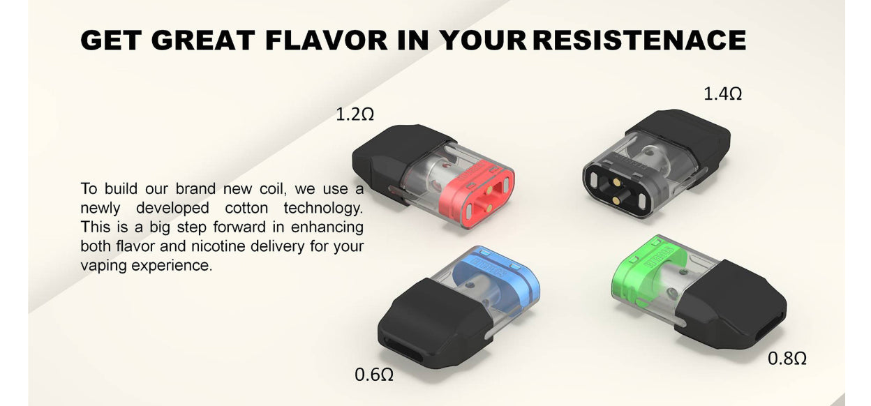 6. 0,6ohm/0,8ohm/1,2ohm/1,4ohm options de pods