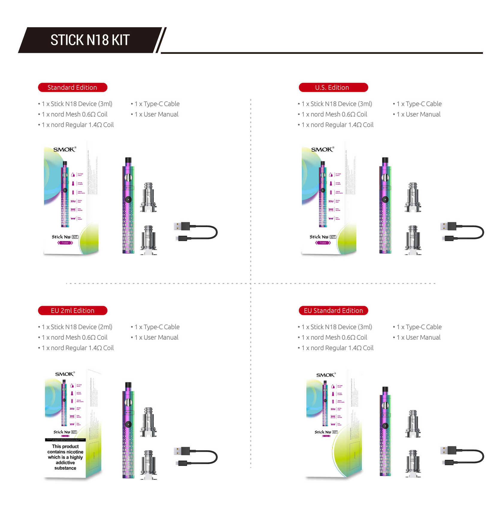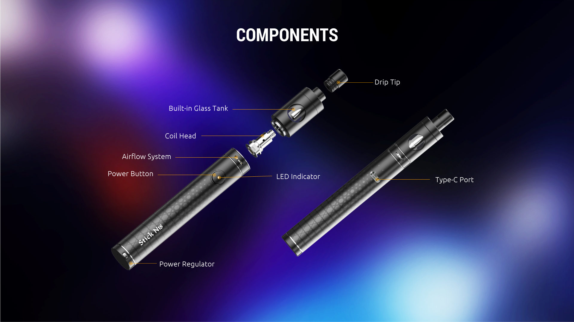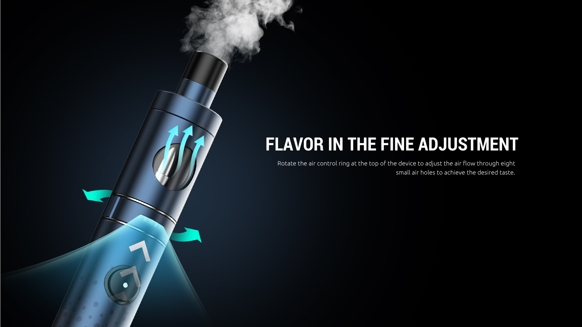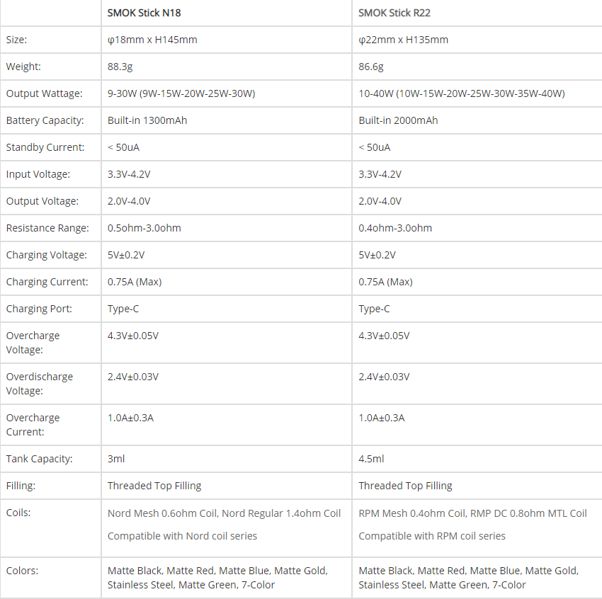 SMOK Stick R22 est un appareil de vape de style stylo AIO qui utilise des bobines SMOK RPM. Il dispose d'une fonction de puissance variable à 6 niveaux et d'un débit d'air réglable. Il y a un régulateur de puissance à la base de l'appareil pour vous fournir des valeurs de watt à plusieurs niveaux pour un ajustement plus ciblé. 7 niveaux de puissance de sortie sont disponibles pour vous de régler : 10W/15W/20W/25W/30W/35W/40W. En outre, il y a aussi une bague de contrôle d'air en haut de l'appareil pour que vous puissiez régler le flux d'air pour obtenir le goût souhaité. Stick R22 a une capacité de batterie de 2000mAh avec une plage de sortie de 10W-40W. Vous pouvez le charger à tout moment avec la conception de charge de type c. Avec un réservoir en verre intégré d'une capacité de 4,5 ml de jus électronique, il vous est facile de voir le niveau de jus électronique.