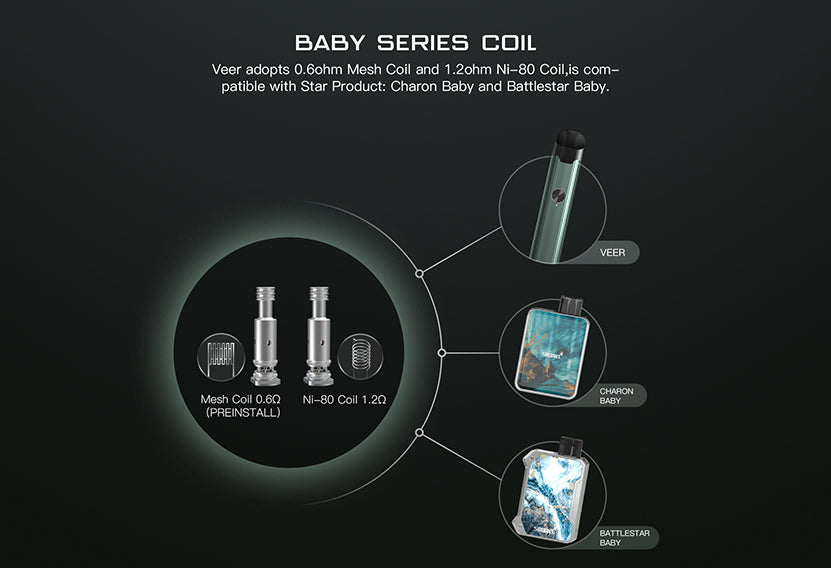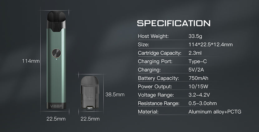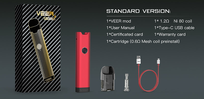 Le kit Smoant Veer Pod est un kit de système de pod simple mais élégant. Et le kit Smoant Veer est alimenté par une batterie intégrée de 750 mAh avec une charge rapide de 2 A de type C. Trois indicateurs de batterie indiquent la durée de vie de la batterie. De plus, l'appareil Smoant Veer est livré avec une cartouche Smoant Veer à remplissage latéral de 2,3 ml qui évite au maximum les fuites d'e-liquide et réduit les dégâts. Installez le pod dans différentes directions, vous obtiendrez 2 flux d'air différents et 2 expériences de vapotage différentes. De plus, le kit Smoant Veer Pod comprend une bobine de maille de 0,6 ohm et une bobine Ni-80 de 1,2 ohm pour un goût dense.