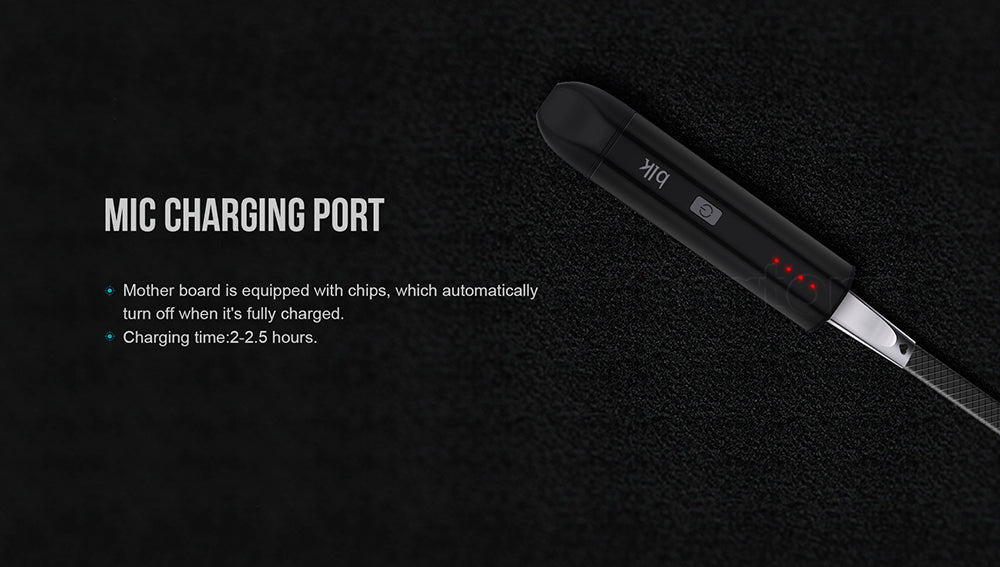 Le vaporisateur d'herbes sèches BLK-B064 de Kingtons est élégant et compact. Il est alimenté par une batterie intégrée de 1600mAh pour un vapotage de longue durée. Son corps est fait en aluminium anodisé, lisse mais durable. Le BLK-B064 possède un micro port de charge, et le temps de charge est de 2 à 2,5 heures. Equipé de puces avancées, il peut s'éteindre automatiquement lorsqu'il est complètement chargé. Il est doté d'une fonction d'alerte par rappel de vibrations. 4 réglages de température satisfont à vos différents besoins.