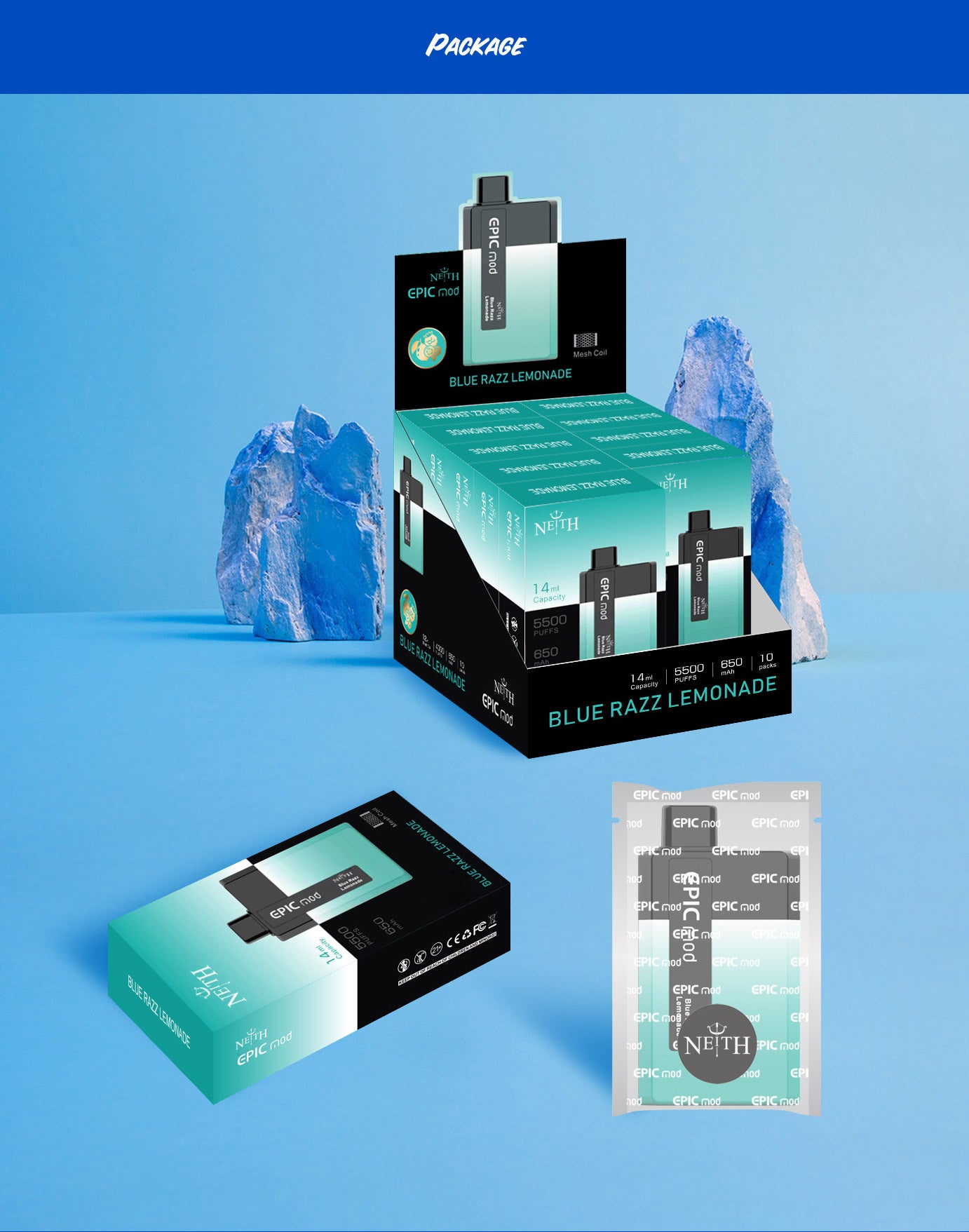 [Clearance sale] NEITH EPICMOD 5500 PUFF Cigarette électronique jetable kit rechargeable 650mAh 14ml (0mg)