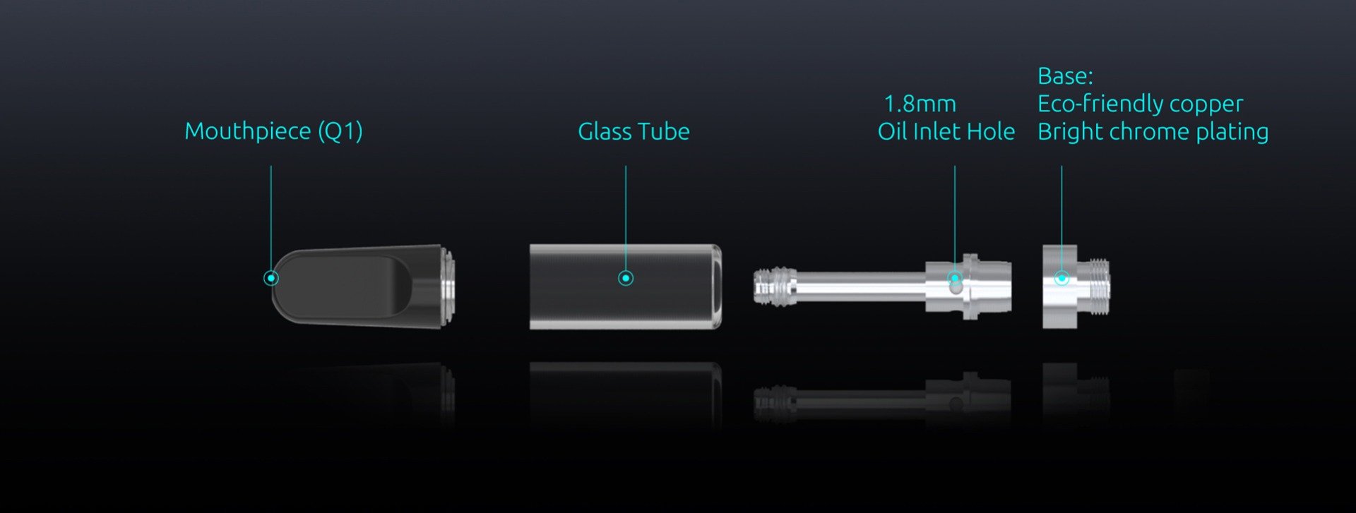 Outre ce qui précède, le Micare arbore également une fonction de vibration. Une vibration signifie que la nacelle est déjà en place ou que le préchauffage est terminé, et que trois vibrations signifient que l'inhalation dépasse 8 secondes. En parlant de la cartouche, il se décline cette fois en deux versions, le T1 et le Q1. Chaque version offre deux types de contenance, si la cartouche de 0,5 ml ne peut pas vous satisfaire, la cartouche de 1 ml peut le faire.